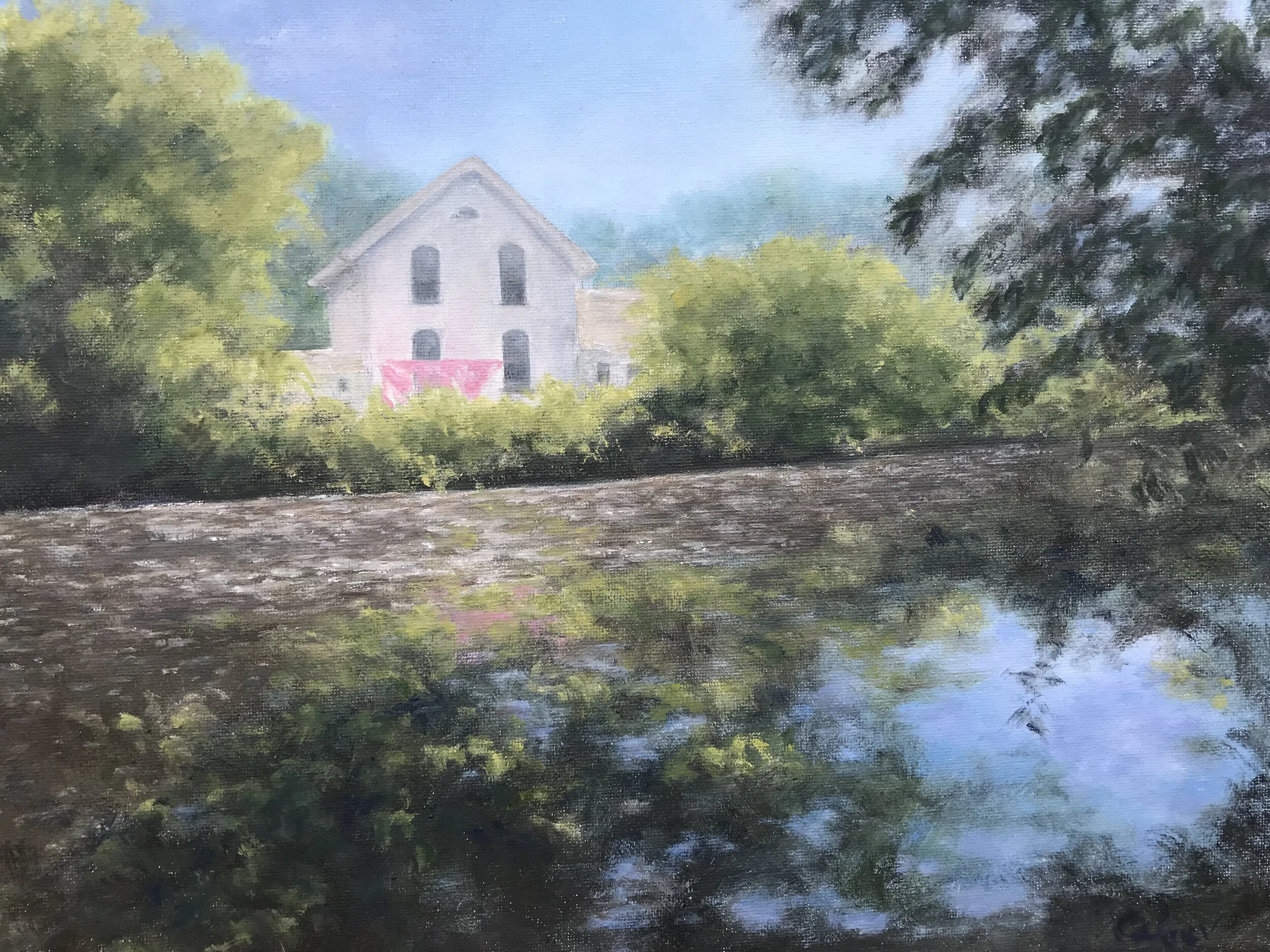 Fuchsia reflections, Cedarburg, Wisconsion, (14” x 11”, oil on canvas)